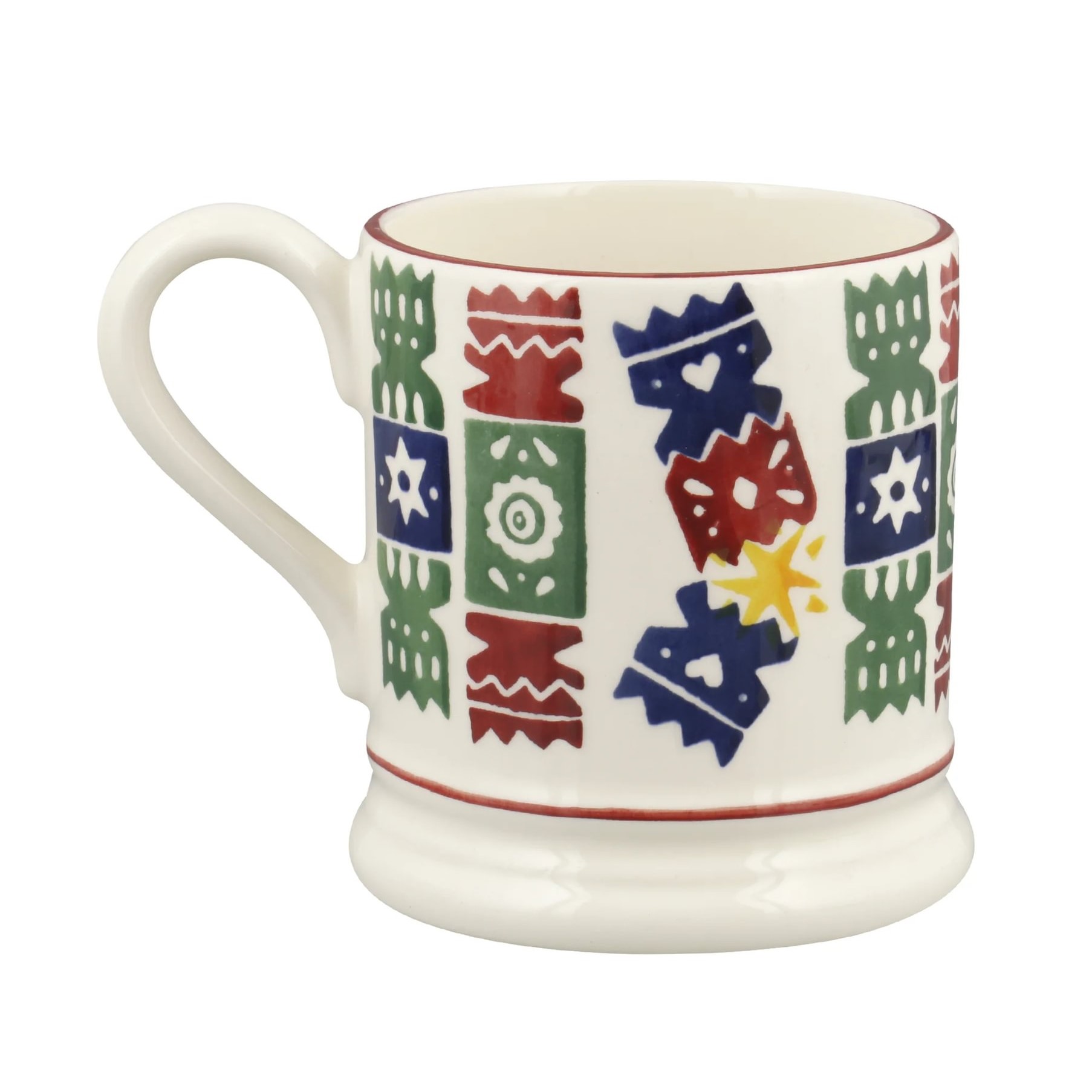 The Emma Bridgewater Christmas Crackers Half Pint Mug is perfect for warming drinks or sharing the Christmas spirit.